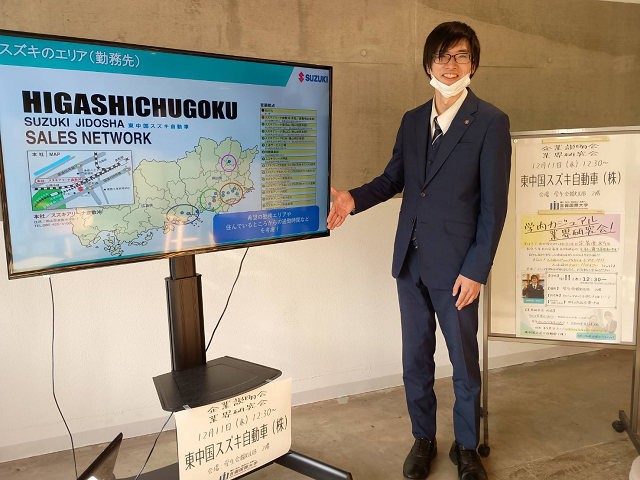 12月11日(木)、高梁キャンパス学生会館「KIUB(キューブ)」2階を会場に、東中国スズキ自動車株式会社様による企業説明会・業界研究会を開催しました。