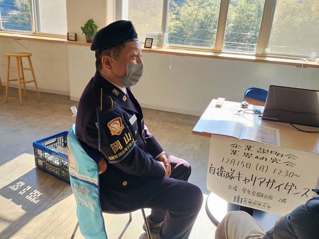 12月15日(月)、高梁キャンパス学生会館「KIUB(キューブ)」2階を会場に、自衛隊(防衛省)によるキャリアガイダンスを開催しました。