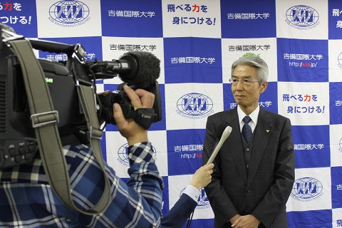 吉備国際大学では、岡山県赤磐市にある(株)是里ワイン醸造場との産学連携により、大学ブランドワインの開発をすすめてまいりました。3月1日、同醸造場において、赤磐市関係者とともに、このたび完成した試作品を集まった報道陣に披露しました。