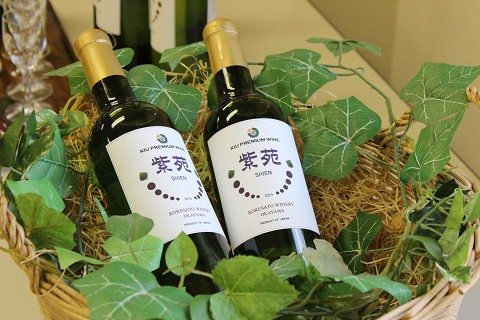 昨秋から同醸造学科の井上守正教授と学生らも参加して試験が進められ、是里ワイナリーとしても同酵母セレビシー菌「紫苑株」を用いて発酵させた岡山特産冬ぶどう「紫苑」でのワイン醸造は初めてでしたが、良質のワインが得られることが明らかになり、同醸造所のワイン製造責任者からも、太鼓判を押す仕上がりを確認しています。また、同様にピオーネからも上質の白ワインの試作品も得られています。今後の市販に向けて、本学としては初となる「吉備国際大学ブランドワイン」の製品化を目指しております。