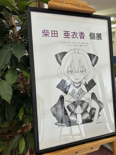 吉備国際大学2号館ラーニングコモンズにて、2026年1月20日から2月2日までの期間中、アニメーション学科・学生作品展「柴田亜衣香 個展」を開催しています。アニメーション学科・前嶋ゼミの柴田亜衣香さんが制作した12点のイラスト作品を展示しています。