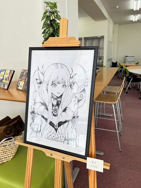会場には、繊細なタッチが魅力のペン画や、色彩豊かなデジタル画など、多彩な表現による作品が並びました。来館者の皆さんは一つひとつの作品に見入っており、学生の高い表現力と創作への情熱が伝わる展示となっています。