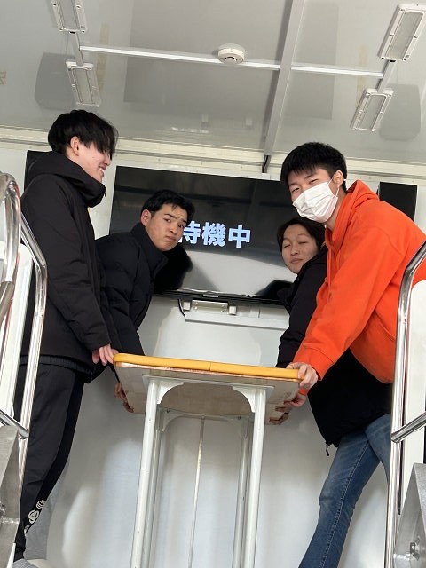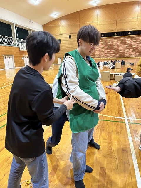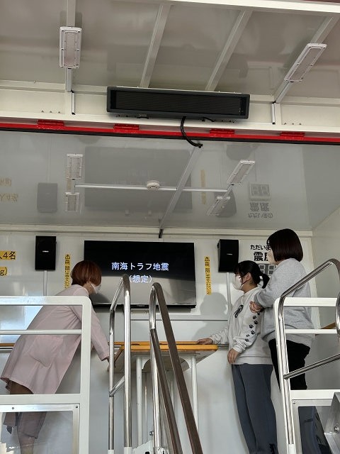 - 災害経験後に生き延びる・健康と生活を守るための学びとして、消防署の協力を得て南海トラフ地震や熊本地震の模擬体験をし、その恐ろしさを感じながら避難体験をしました。