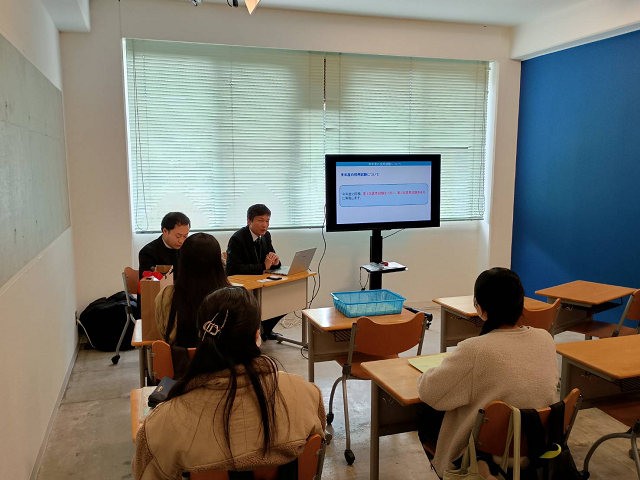 この日は、高梁キャンパスを訪れた「Link.しまね 岡山拠点」の、島根県商工労働部雇用政策課学生就職アドバイザーの皆様から学生らに向けて、島根県内への就職支援に関する取組紹介や、様々なイベント案内を行われました。早速イベントに申し込む学生もあるなど、島根県への就職に関して、学生らは理解を深めていました。
