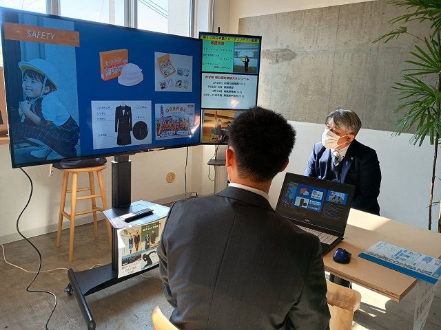 この日は、同社人事総務部の担当者による、同社の社員による各部門の仕事内容がわかる動画とともに同社における販売商品のこだわりや特徴など、詳細な説明が行われました。