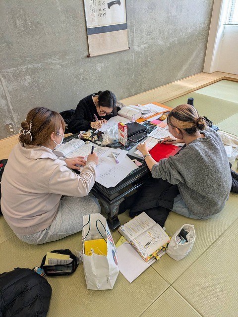 広い教室で資料を広げて集中的に学習する学生、少人数で静かに学べる教室を選ぶ学生、畳敷きの落ち着いた空間でじっくりと考えを深める学生など、その姿はさまざまです。
