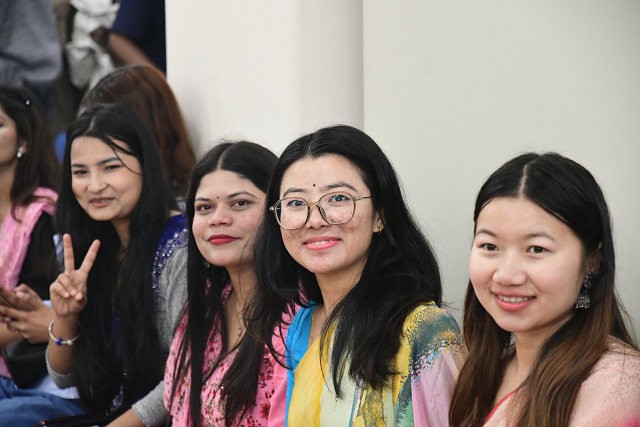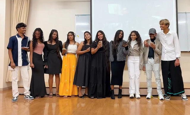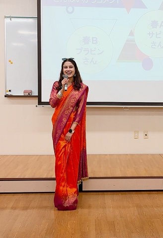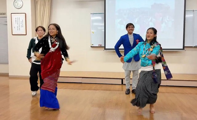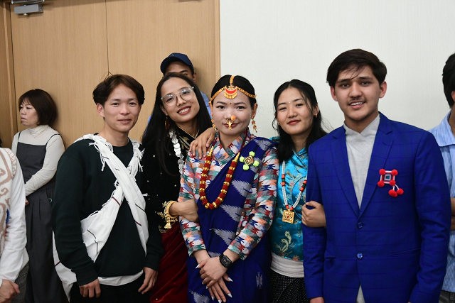 料理を楽しんだ後は、この1年間の歩みを振り返るスライドショーを上映。思い出に浸った後、留学生らによる華やかなパフォーマンスが披露されました。ギター演奏に合わせた歌や民族衣装を身にまとった伝統ダンス、後輩から先輩へ贈る合唱などが続き、会場の盛り上がりは最高潮に達しました。さらに、在学中に顕著な活躍を見せた学生への表彰式も行われ、教員から賞状と記念品が手渡されると、会場は温かい拍手に包まれました。