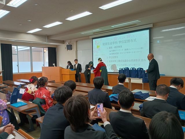 キャンパスの垣根を越え、地域というフィールドで多様な人々と関わりながら実践力を育んできた卒業生の皆さん。経営社会学科で培った経験と絆を胸に、それぞれの新しいステージで社会に貢献し、力強く活躍されることを教職員一同心より応援しています。ご卒業、本当におめでとうございます!