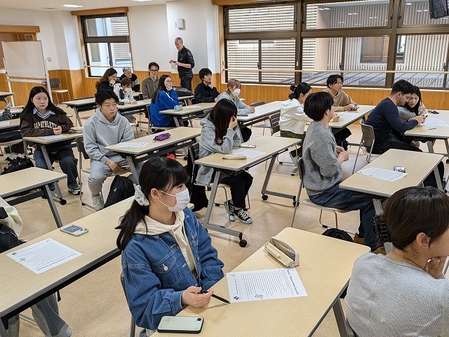4月15日(水)外国学科のある岡山キャンパスで、新入生並びに交換留学生の歓迎イベントWelcome Eventを行いました。イベントを通じて、まず、岡山キャンパス内に何があるのかを知ること、次に、交換留学生を含む留学生と日本人学生、そして、学年を超えた学生相互の交流を促進することが目的でした。このイベントには、1年生を中心に約30名の学生が参加しました。交換留学生は6名全員が参加しました。英語ネイティブ教員(フォーセット先生、イアン先生、ポール先生)が企画し、運営していただきました。外国学科らしく、このイベントはすべて英語で運営されました。