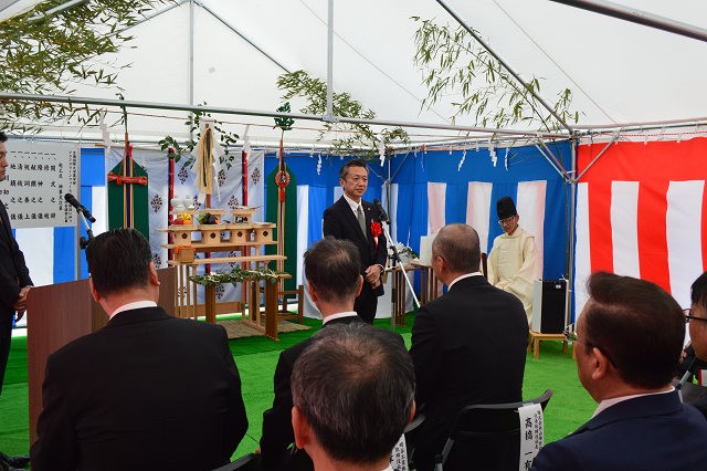 起工式には、学内関係者の他、守本憲弘 南あわじ市長、谷口博文 市議会議長、工事関係者などが出席し、令和9年2月の完成に向け、工事の安全を祈願しました。