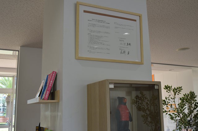 起工式の後は、順正学園教育後援会の特別援助金により整備されたエントランスや自修道場などの見学を行いました。なお、エントランスには、昨年に包括協定を締結したモンベル社のアウトドアファニチャーなどが配置されています。