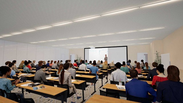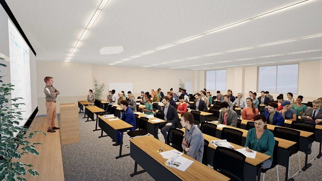 新校舎は鉄骨造3階建て、1階は図書館・シャワールーム・展示コーナー、2階は演習室、3階は約300名を収容可能な大講義室を備え、令和9年2月に完成予定です。